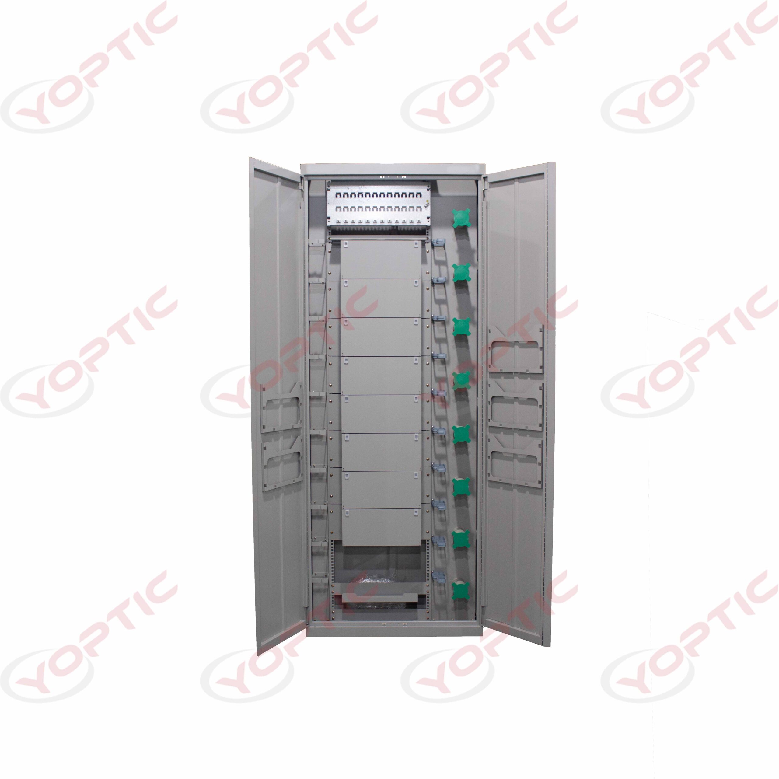 YODF-B Type1 Optical Distribution Frame, also known as Fiber Optic Distribution Frame, is mainly used for the terminal and distribution of the main optical cable in the optical fiber communication system. This equipment can achieve the fixed, stripping, grounding protection of optical cable, as well as a variety of optical fiber welding, jump, redundant fiber coiling, reasonable layout, wiring scheduling and other functions, is the transmission medium and transmission equipment between the supporting equipment. It is suitable for small and medium-sized distribution systems from fiber to cell, fiber to building, remote module and wireless base station.